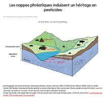 - [PUBLICATION] Les nappes phréatiques induisent un héritage en pesticidesLe 23 mars 2026Rock Bagagnan (Université de Rennes, Géosciences Rennes), Anniet Laverman (CNRS, ECOBIO), Ronan Abhervé (INRAE, SAS) et Camille Vautier (ENS Rennes, Géosciences Rennes) publient un article reliant âge de l’eau et pesticides. L’étude, publiée en mars 2026 dans Journal of Hydrology, est basée sur un bassin versant agricole à Kervidy-Naizin (Bretagne, Morbihan).